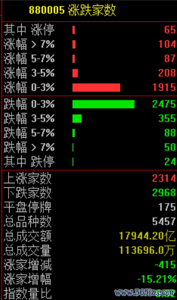 市场共2314个股上涨,65只个股涨停,2968只个股下跌。