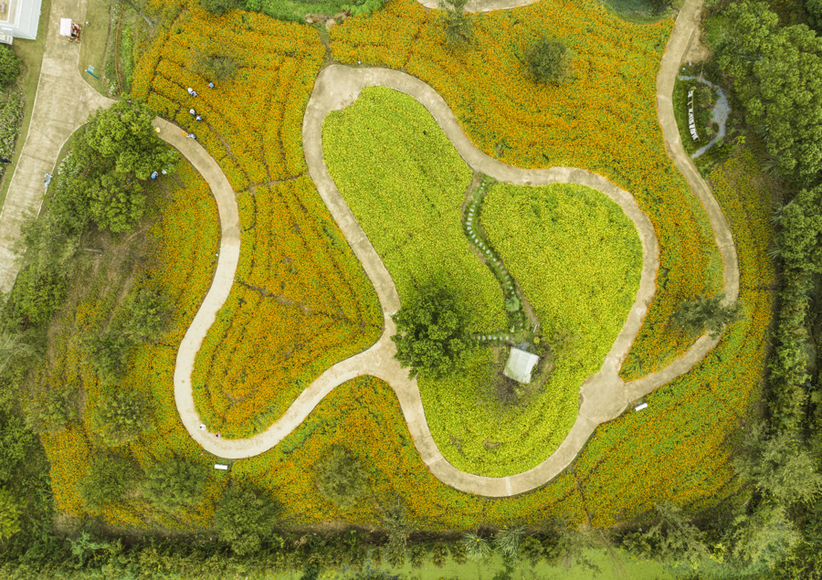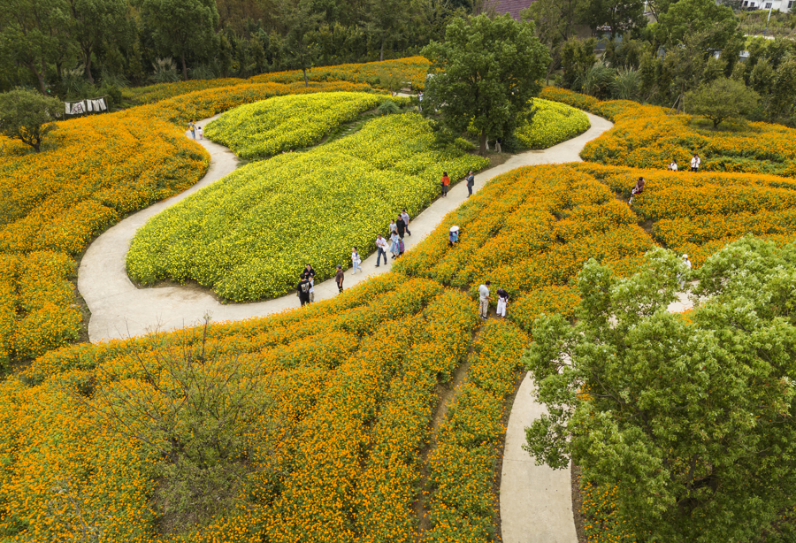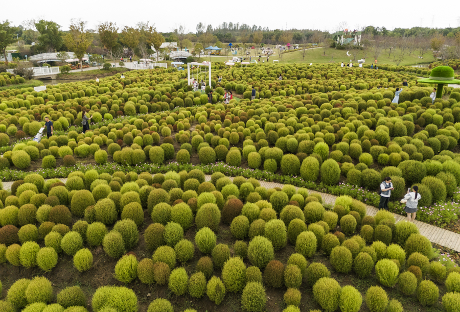 申城“一夜入秋”启远网 ,金山区朱泾镇花开海上生态园宛如打翻的调色盘。